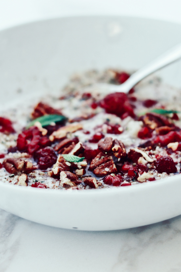 Noatmeal, only grains, seeds and fresh fruits. This breakfast is so good and its a vegetarian, vegan and paleo recipe. Its also for paleo and low carb diet.